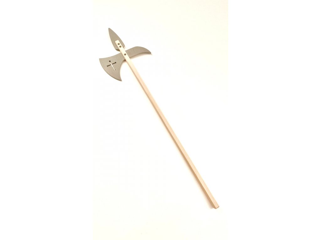 Drevený suvenír z bukového dreva a bukovej preglejky v tvare halapartne. Farba hlavy halapartne podľa výberu -červená, čierna, biela, modrá alebo šedá. Pri bielej farbe je priznané drevo.