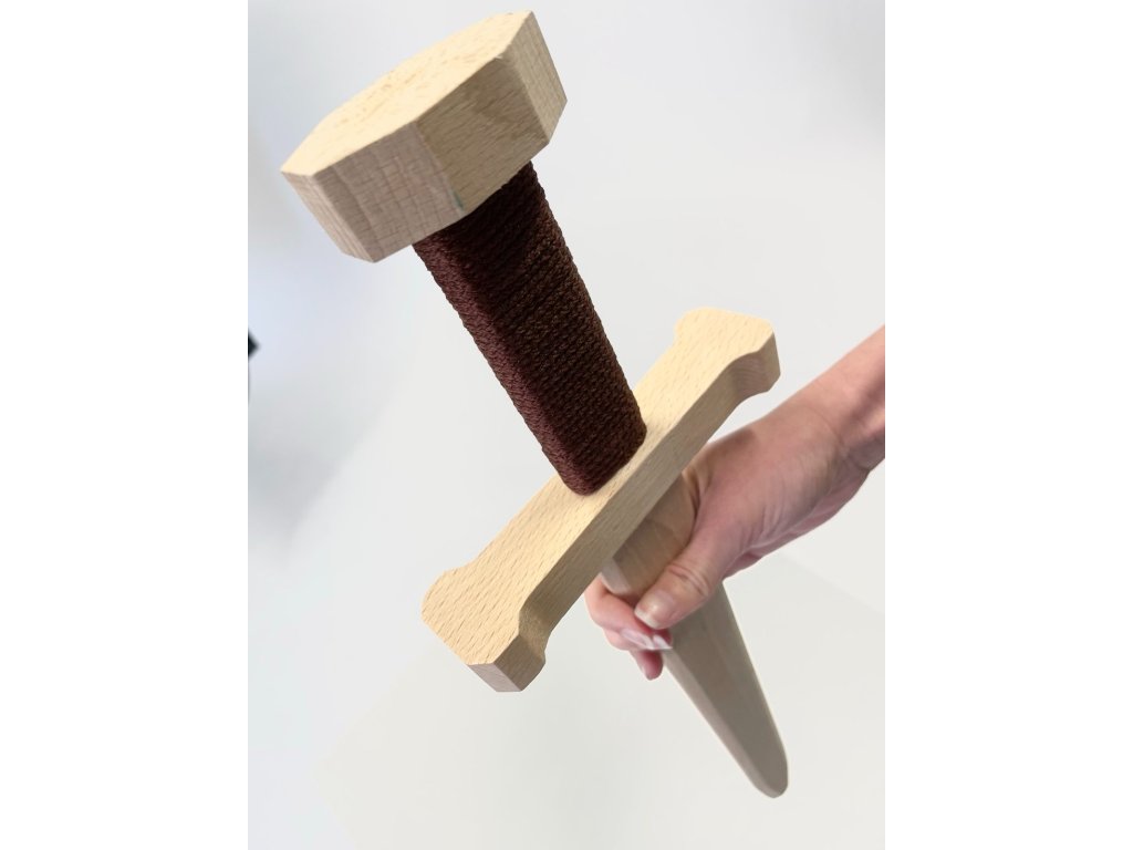 Drevený suvenír z bukového dreva v tvare malého meča s hnedou rukoväťou a motívom čiernej hlavy draka. Možnosť výberu z dvoch prevedení záštity - Slovan alebo Templár.